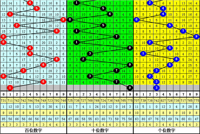 百位:刻下遗漏最大的号码为7,遗漏30期,历史上该号最大遗漏为64期,本期百位不竭排斥号码7。